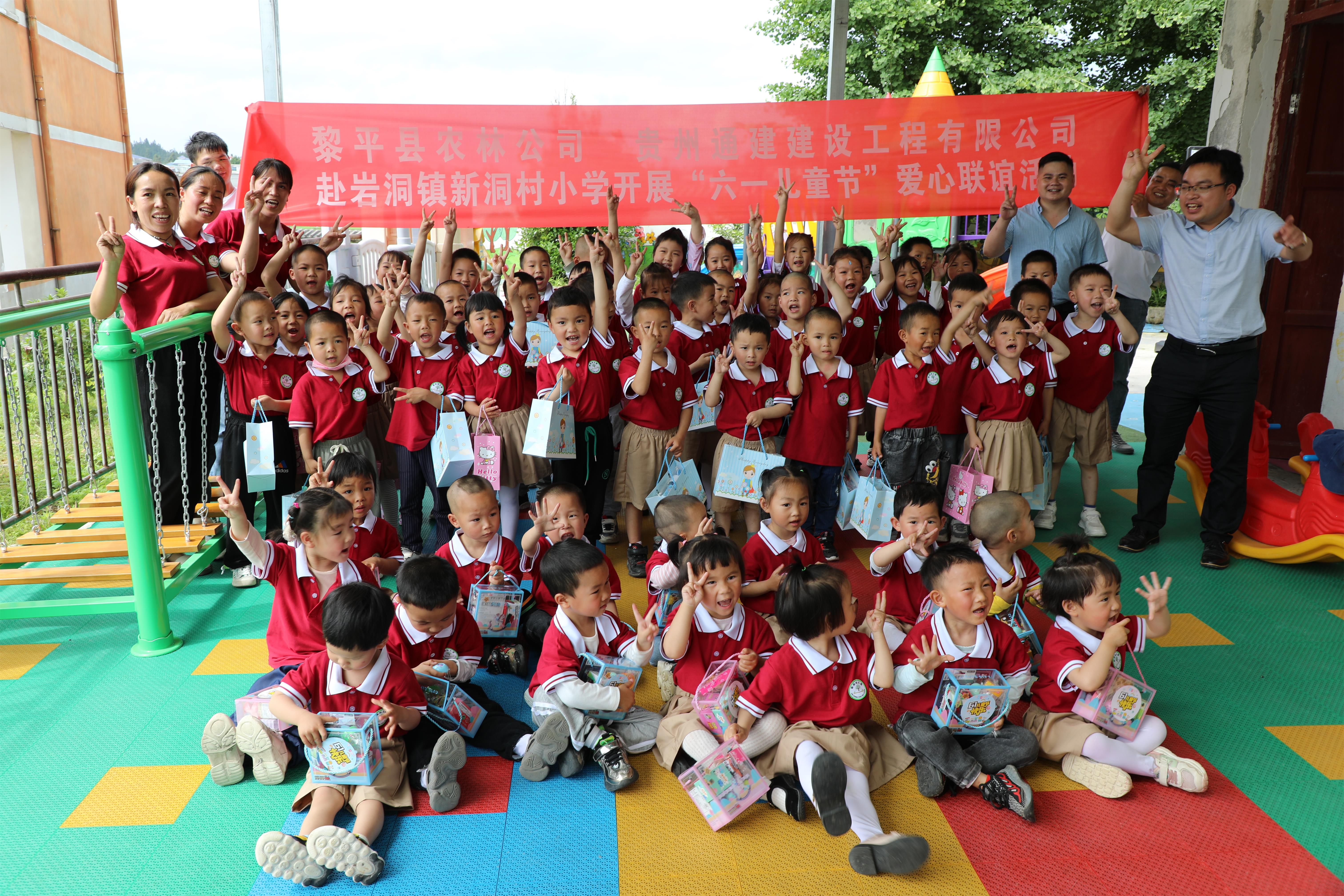 与此同时,黎平县农林公司、贵州通建建设工程有限公司赴岩洞镇新洞村小学开展“六一儿童节”爱心联谊活动。