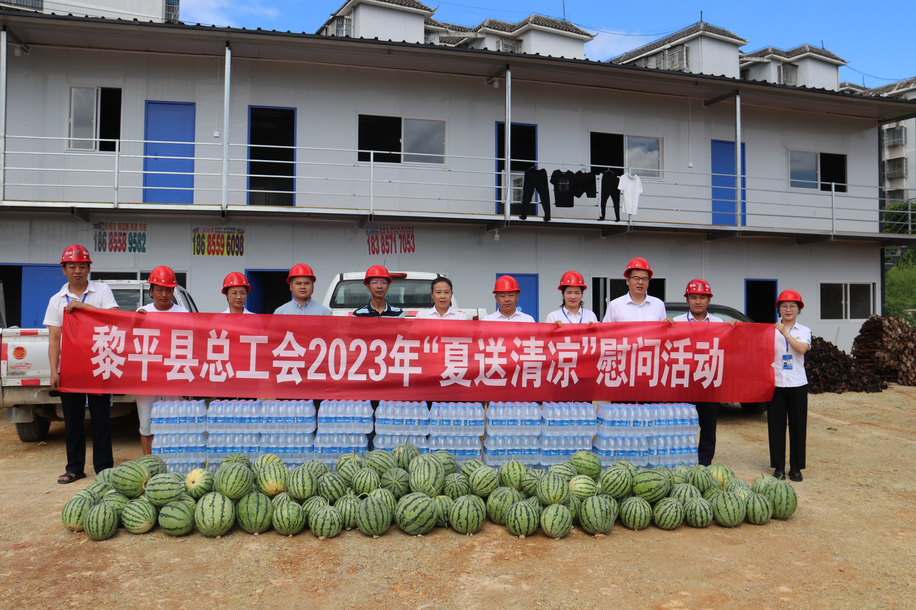炎炎夏日,酷暑难耐。202386日上午,黎平县总工会党组书记常务副主席龙懿带队深入贵州通建建设工程有限公黎平县第九小学建设项目项目部,亲切慰问冒着酷暑战斗在一线的公司职工、建筑工人,为在高温情况下仍坚持工作的一线工人送去清凉和关怀。本次慰问活动,县总工会共为该项目部工人送去西瓜1000、矿泉水30